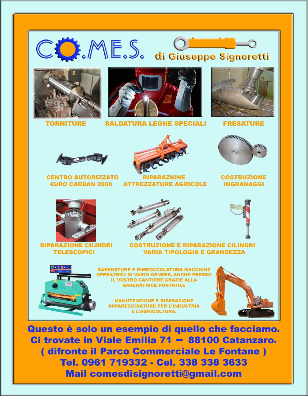 La CO.ME.S. è un’officina che da oltre vent’anni si occupa di torniture, fresature, saldature, riparazione attrezzature agricole e industriali, barenature benne e mezzi meccanici di vario genere,costruzione e riparazione cilindri idraulici, ingranaggi ecc…